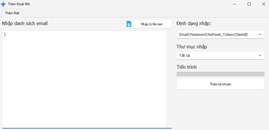 Nhập danh sách tài khoản email bạn muốn thêm, mỗi dòng là 1 tài khoản